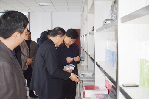 邸書記參觀國超公司四樓產(chǎn)品展示,研究汽車多媒體培訓(xùn)光盤、U盤